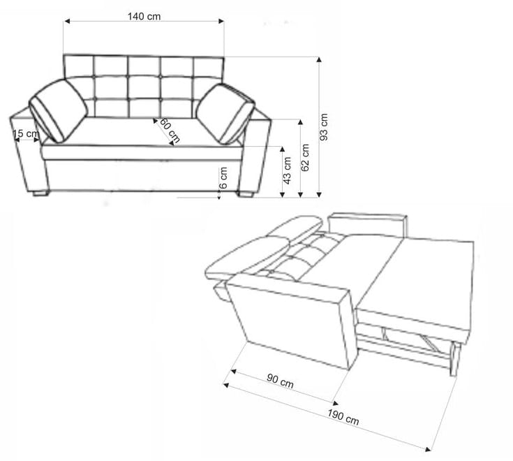 - Wymiary: szerokość - 170 cm, głębokość - 90-190 cm, wysokość - 93 cm, wysokość siedziska - 43 cm, waga brutto - 84,3 kg