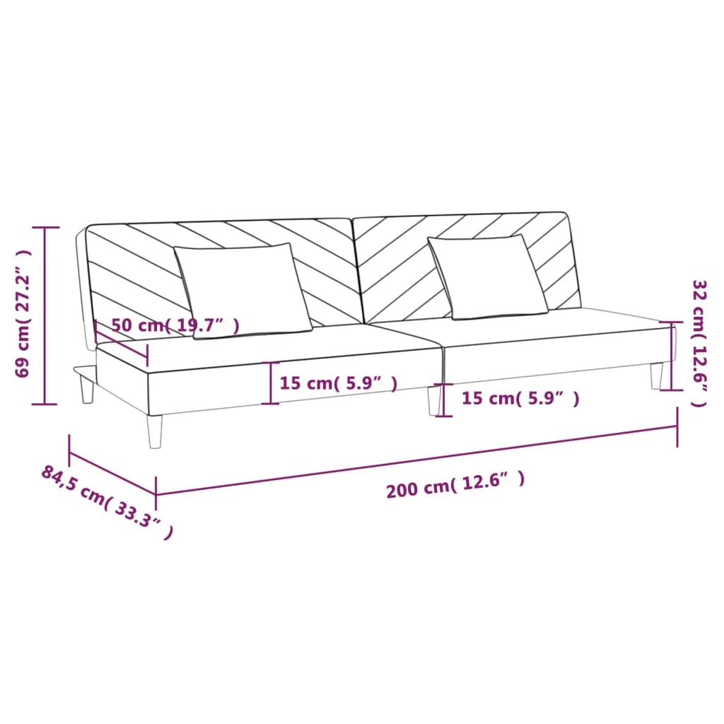 - Wymiary całkowite : długość - 200 cm, szerokość - 84,5 cm, wysokość - 69 cm, głębokość siedziska - 50 cm, grubość siedziska - 15 cm, wysokość siedziska nad ziemią - 32 cm, wysokość oparcia w pozycji pionowej - 69 cm, wysokość oparcia w pozycji podniesionej do połowy - 56 cm, grubość oparcia -12 cm, wysokość nóżek - 15 cm
