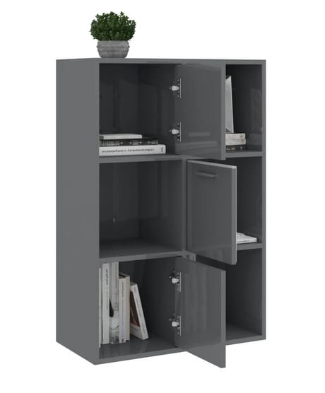 Ten funkcjonalny regał należy ustawić przy ścianie. Warto pamiętać, że trzeba przymocować go do niej za pomocą elementu załączonego do zestawu montażowego! Mebel wykonany jest z wytrzymałej płyty wiórowej w popularnym kolorze: szarym. Klasyczny odcień i design sprawiają, że szafka biurowa Office wpisze się w niejedno wnętrze. Oczywiście doskonale zda egzamin w biurze, ale ustawić ją można również w domu, np. w pokoju dziecka. I wtedy świetnie sprawdzi się jako miejsce na przybory szkolne i jako podręczna biblioteczka malucha lub starszaka. Może być też alternatywną formą wyeksponowania domowej biblioteki w salonie. Uwaga! Nie wolno wspinać się na tę szafkę, podważać ją, wchodzić pod nią!