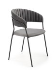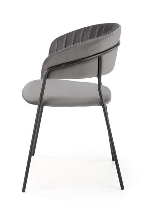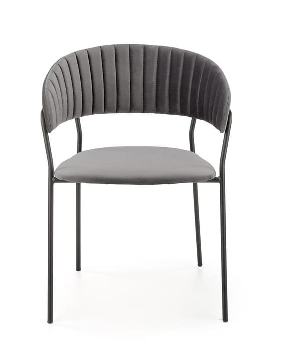Konstrukcja tego modelu jest dość minimalistyczna, ale siedzisku nie brakuje charakteru. Proste nóżki stalowe i element oparcia (prezentujący się interesująco!) wykonane są ze stali malowanej proszkowo w czarnym kolorze, nadającym temu meblowi pewnego blichtru. Jest on jednak skutecznie zrównoważony elementami miękkimi, tapicerowanymi. Komfortowe siedzisko wykonane jest z eleganckiej tkaniny velvet w kolorze szarym. Podobnie jak wygodne, zaokrąglone oparcie. Tutaj jednak designerzy odważyli się na interesujące dodatki. Przebiegające w pionie zaokrągleń przeszycia sprawiły, że krzesło Jacob wygląda jeszcze korzystniej.