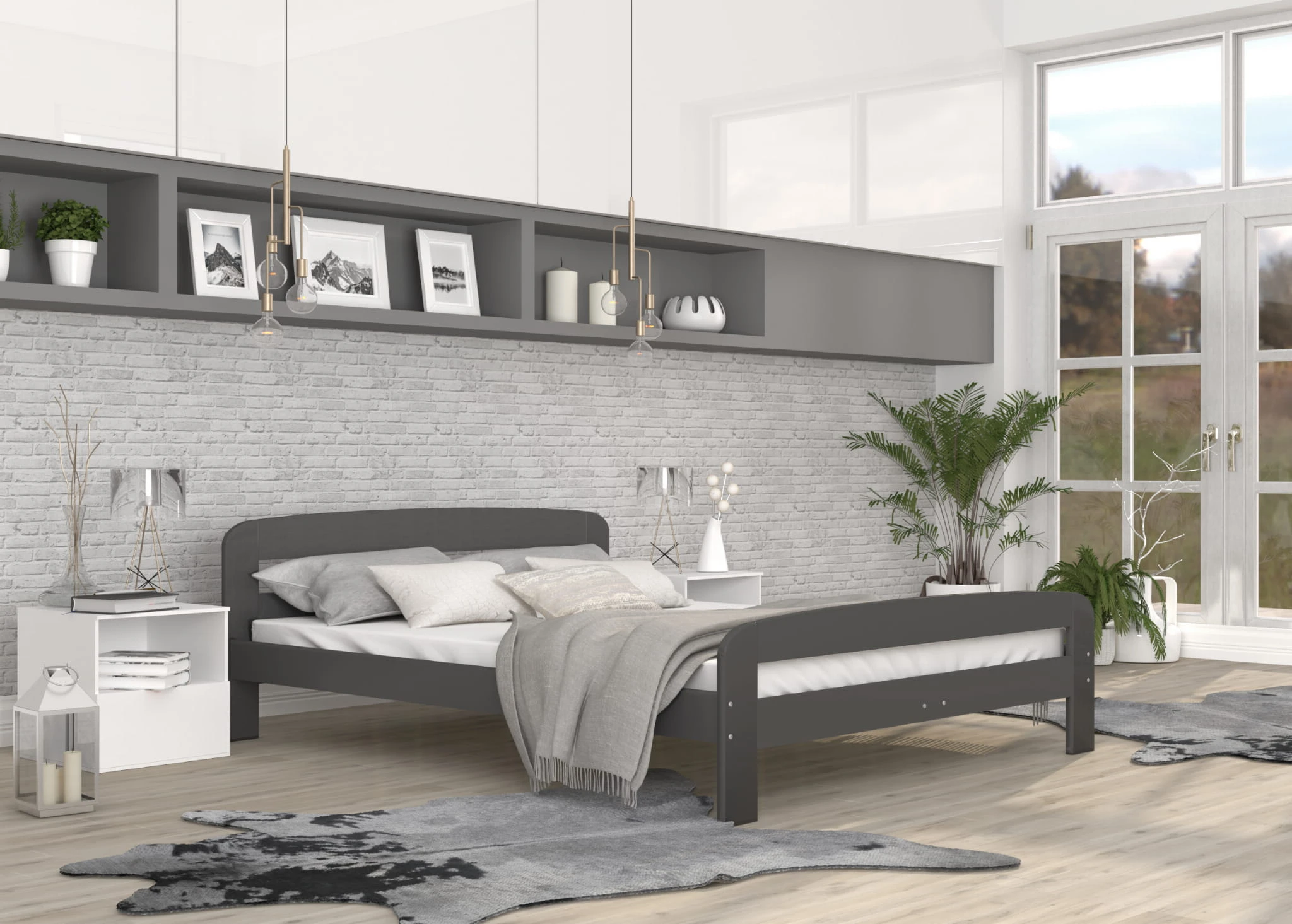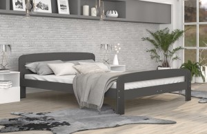 Szare łóżko podwójne 140x200 cm, drewniany stelaż