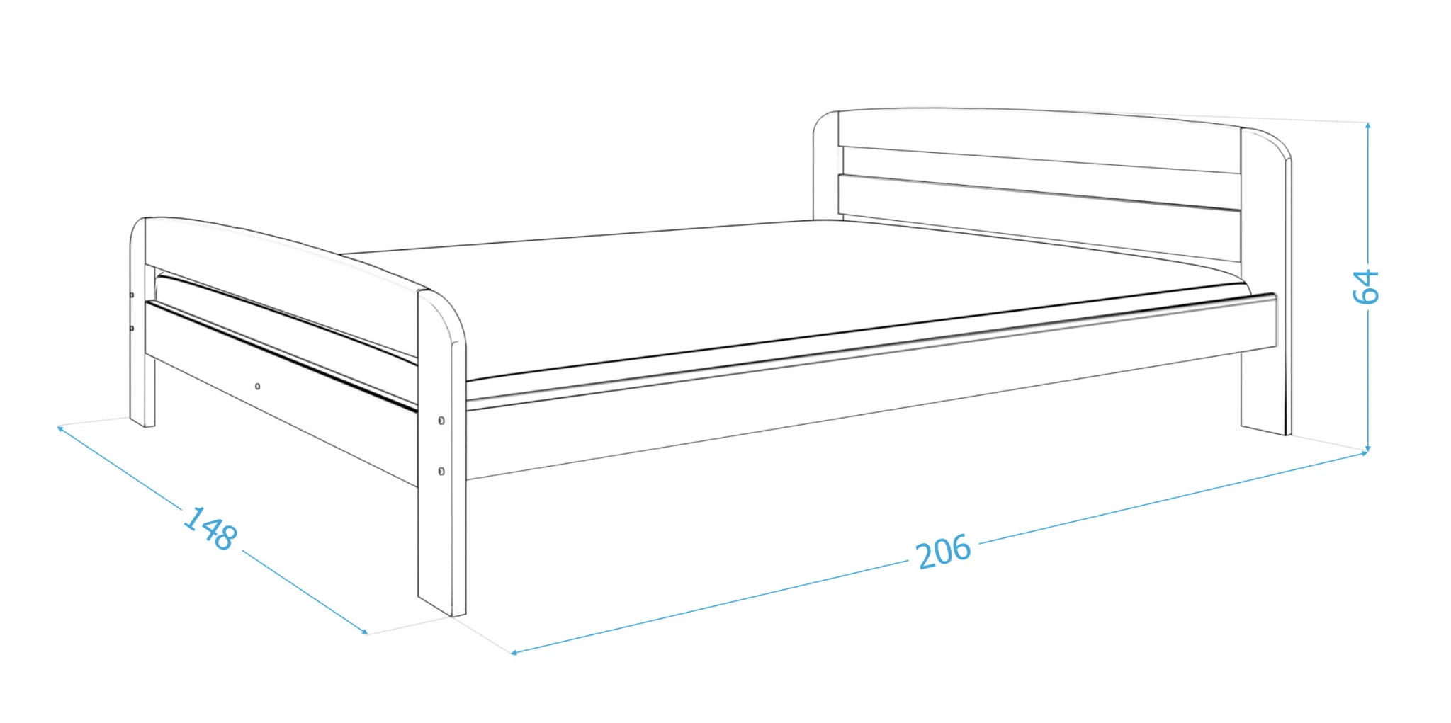 To 2-osobowe łóżko wyprodukowane z wysokiej jakości płyty MDF - cechuje się niezwykle solidną i trwałą konstrukcją. Stelaż wykonano z mocnych, sosnowych desek. Jest to łóżko parterowe, które ułatwia wstawanie. Przestrzeń pod łóżkiem gwarantuje natomiast właściwą wentylację materaca od spodu. Dzięki optymalnemu rozmiarowi 140 x 200 cm - mebel ten zapewni parze osób błogi, zdrowy sen, niezakłócony nocnymi przekomarzaniami o każdy centymetr powierzchni.