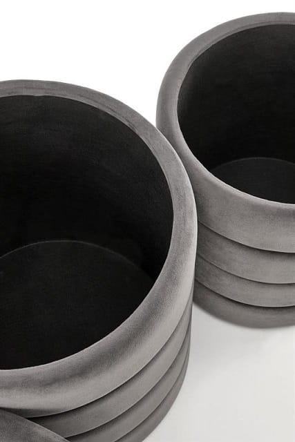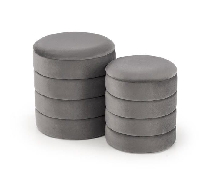Szare okrągłe pufy ze schowkiem