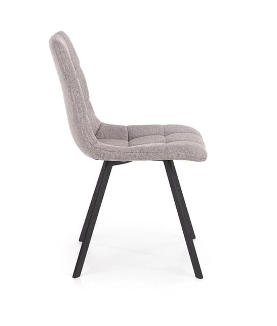 Nasze krzesło ma wiele cech, na które warto zwrócić uwagę. Jego metalowy stelaż ma lekką konstrukcję. Proste nogi ze stali malowanej proszkowo na kolor czarny - są bardzo efektowne i solidne. Miękkie siedzisko fituje z modnym pikowanym oparciem, układającym się w kwadraty.