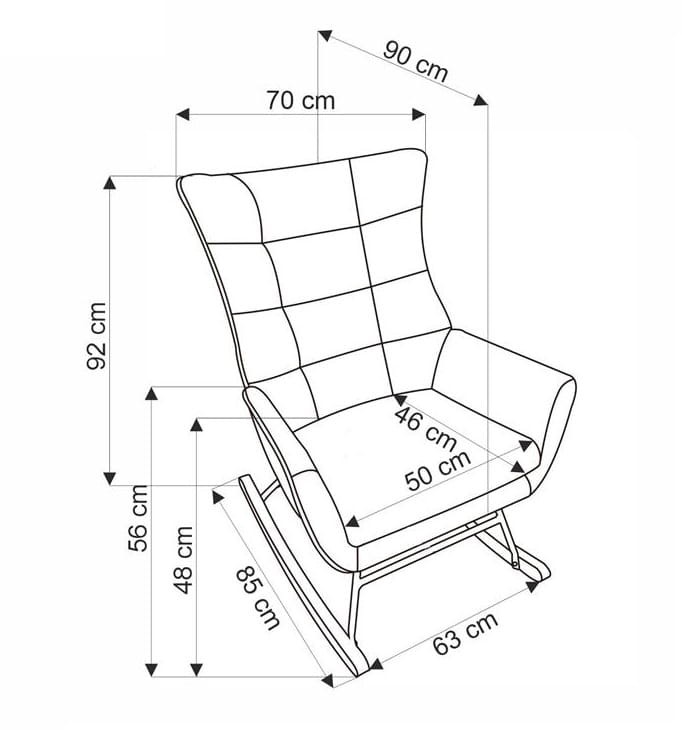 - Wymiary: szerokość - 70 cm, głębokość - 90 cm, wysokość - 92 cm, wysokość siedziska - 48 cm