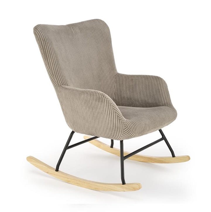 Czarny stelaż i drewniane bieguny w naturalnym kolorze nadają temu fotelowi bujanemu niepowtarzalny, nowoczesny wygląd. Kombinacja szarego koloru i klasycznego sztruksu sprawia, że jest to mebel, który nie tylko wzbogaci Twoje wnętrze, ale także przyciągnie spojrzenia gości.