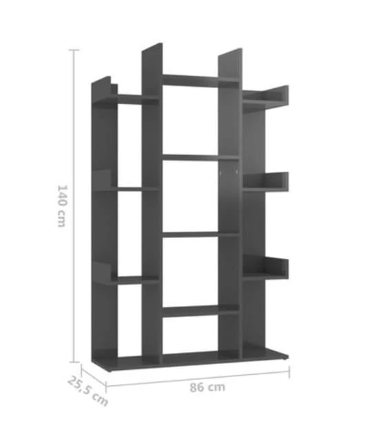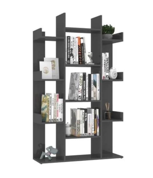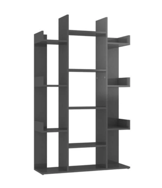 Naszą propozycją jest regał-biblioteczka o nietypowej formie przypominającej kształtem rozłożyste drzewo. Regał na książki Carlo składa się z trzech wyraźnie wyróżniających się części: pięciopiętrowej, szerokiej otwartej szafki stanowiącej pień i dwóch identycznych segmentów z czterema węższymi półkami, które przypominają gałęzie naszego wyimaginowanego drzewa. Mebel wykonany został z płyty meblowej w kolorze szary połysk. Tego rodzaju wykończenie gwarantuje wysoką odporność powierzchni na uszkodzenia mechaniczne, a także wygodę w codziennym użytkowaniu - do czyszczenia mebla wystarczy jedynie wilgotna ściereczka.