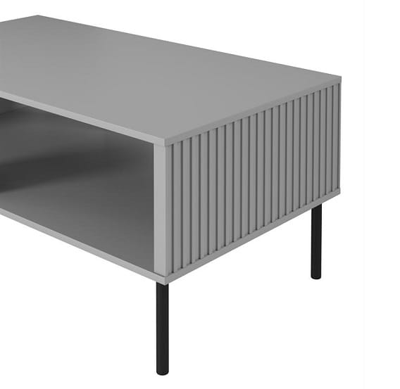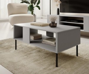 Ława ryflowana Kioto stanowi estetyczny dodatek do salonu, ale przede wszystkim praktyczny mebel, który wniesie funkcjonalność do wygodnej przestrzeni. Dzięki wbudowanej półce, idealnej do przechowywania książek czy czasopism - utrzymanie ładu w pomieszczeniu stanie się łatwiejsze niż kiedykolwiek wcześniej. Forma prostopadłościanu, w połączeniu z ryflowaną płytą, nadaje prezentowanemu stolikowi kawowemu zupełnie nowego wymiaru. Unikalny charakter, sprawi, że ława stanie się centralnym punktem eleganckiego salonu.