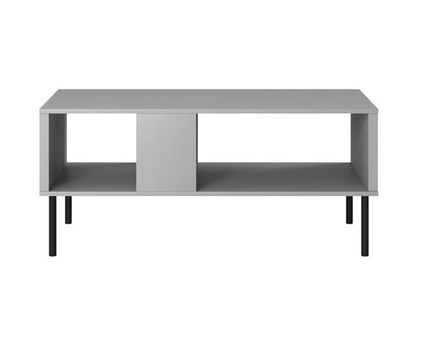 Ława kawowa Kioto została zaprojektowana z użyciem wysokiej jakości materiałów, takich jak płyta meblowa laminowana, MDF okleinowany oraz metalowe nóżki. Odcienie popielatego i czerni doskonale korespondują, tworząc mebel, który nie tylko wygląda wyjątkowo, ale również jest trwały i solidny.