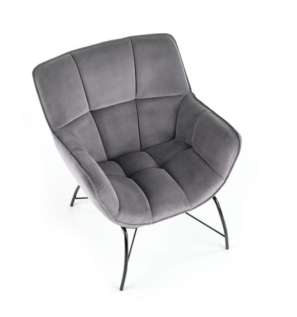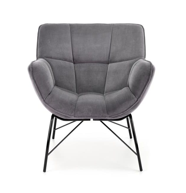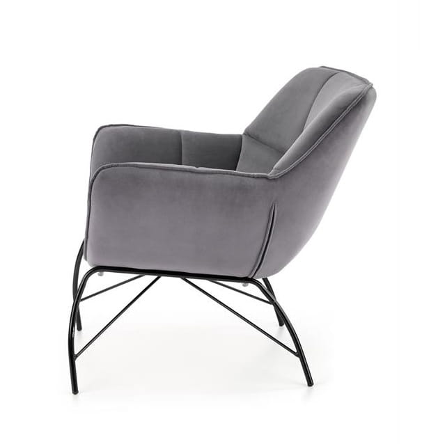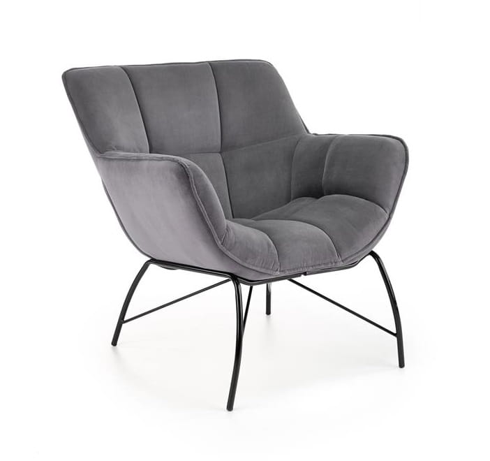 Prezentowany nowoczesny fotel wykonany jest z metalu i przyjemnej w dotyku tkaniny. Ma bardzo ciekawie wyprofilowaną konstrukcję, gdzie stabilne siedzisko podtrzymują smukłe nogi. Wygodne podłokietniki, podobnie jak oparcie, stanowiące z częścią przeznaczoną do siedzenia jednolitą formę - tapicerowane są komfortową w użytkowaniu tkaniną, w kolorze popielatym. Ta piękna tapicerka jest miękka, aksamitna i wręcz zachęca do tego, by zrelaksować się w fotelu. Ponadto Furio charakteryzuje się zdecydowanym pikowaniem, przez co wygląda jeszcze ciekawiej.