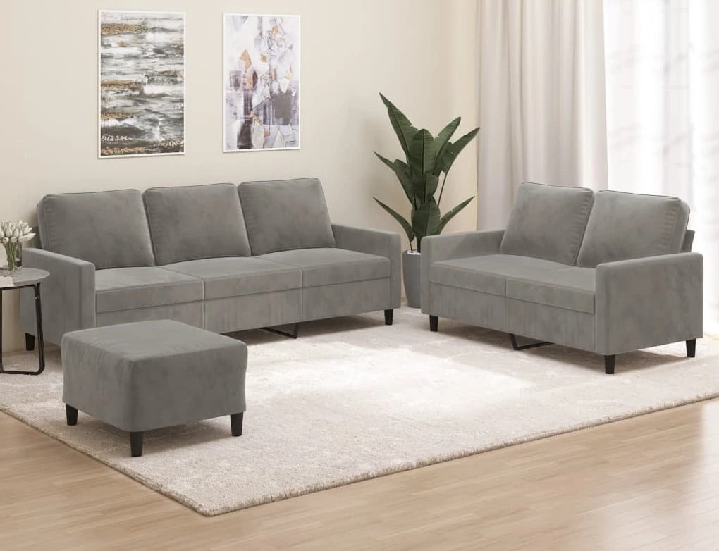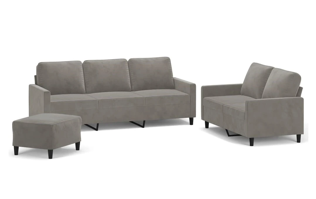 Mamy oto trzyczęściowy komplet mebli wypoczynkowych. W jego skład wchodzą: sofa 3-osobowa, sofa 2-osobowa oraz funkcjonalny podnóżek.