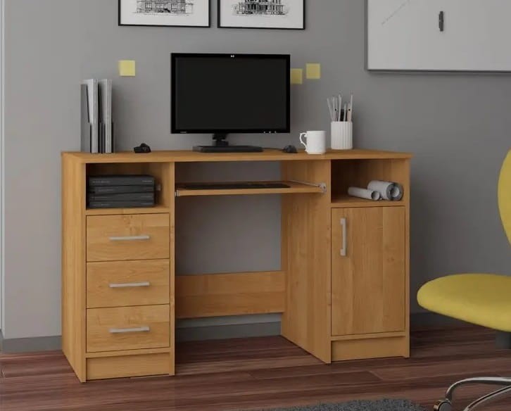 Szkolne biurko z szufladami i półkami olcha