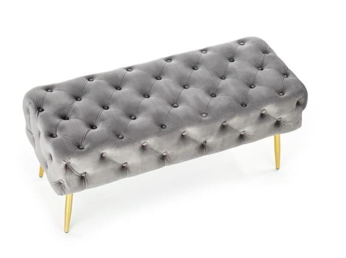 Mebel obity został tkaniną typu Velvet, dzięki czemu siedzisko zyskuje wyjątkową miękkość i ekskluzywny design. Głęboko przeszyte guziki dodają ławce wyjątkowego stylu i oryginalności. Popielate siedzisko wygląda delikatnie i subtelnie uzupełni wnętrze.