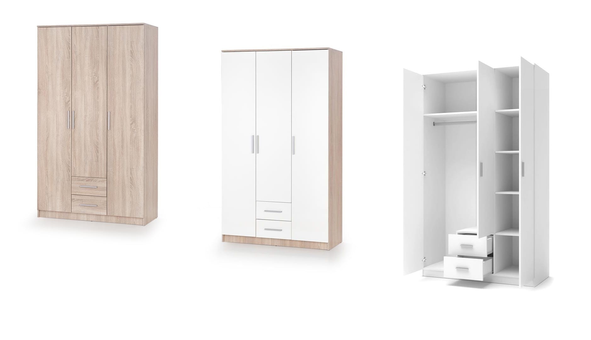 Trzydrzwiowa szafa z wieszakiem i półkami sonoma
