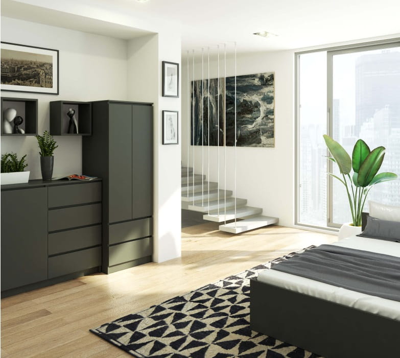 Nasza szafa Merkle doskonale komponuje się z innymi meblami z kolekcji Dorian.