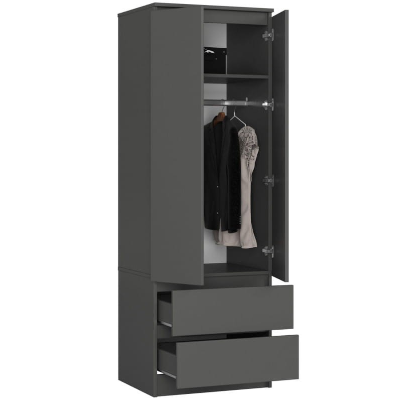 Dwudrzwiowa szafa Dorian II idealnie nadaje się dla osób lubiących prostotę i nowoczesną elegancję w jednym. Poza stylowym wyglądem mebel ten jest bardzo funkcjonalny. Szafa z drążkiem, dzięki swojemu pięknemu kolorowi, pasować będzie także do większości nowoczesnych aranżacji w pokojach małych podróżników i nie tylko.
