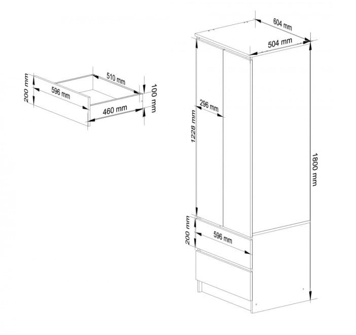 Wąska szafa z szufladami Dorian II - wysoka funkcjonalność