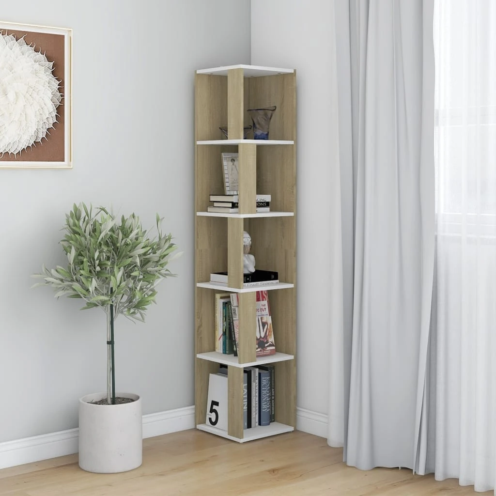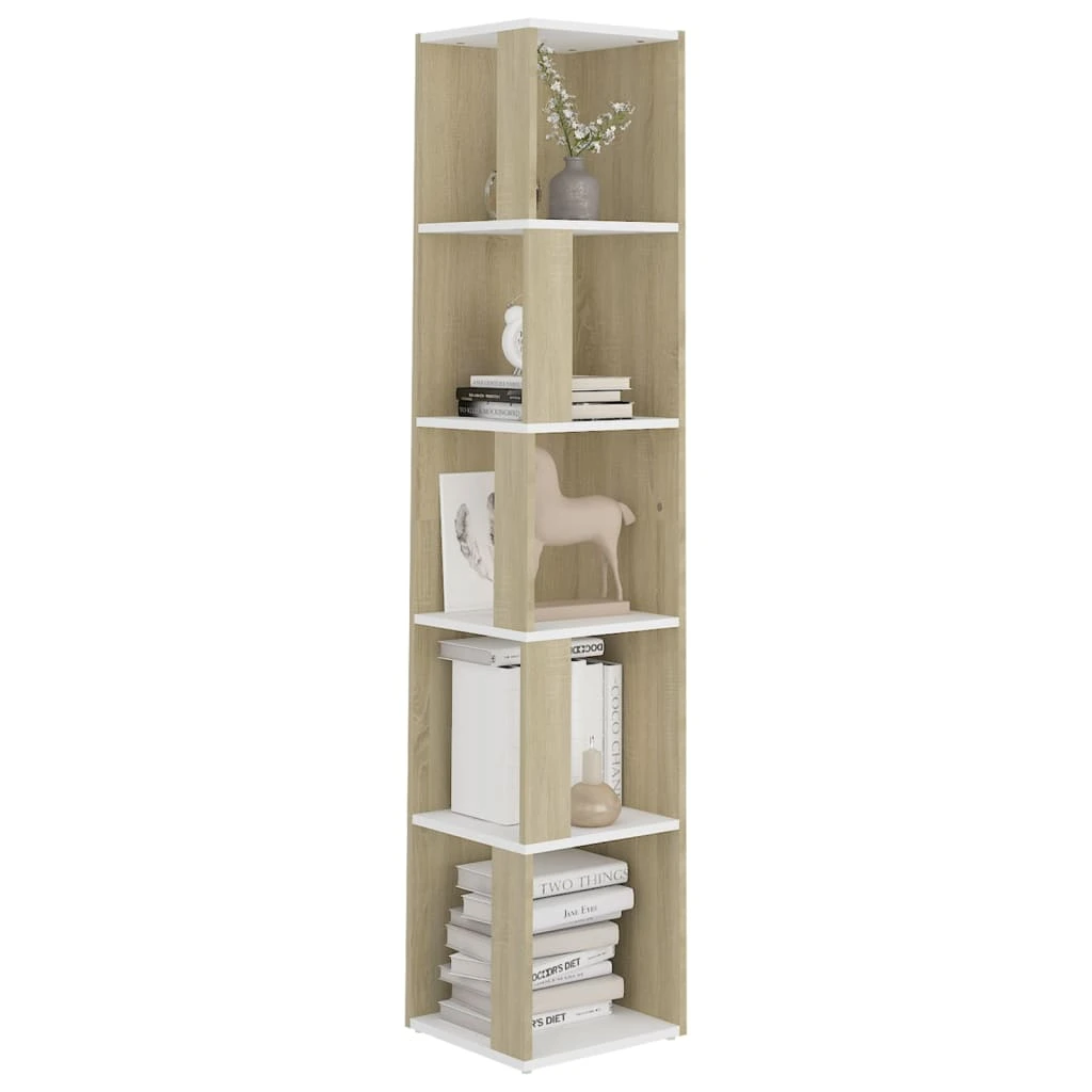 Wąski regał narożny na książki, zabawki sonoma/biały
