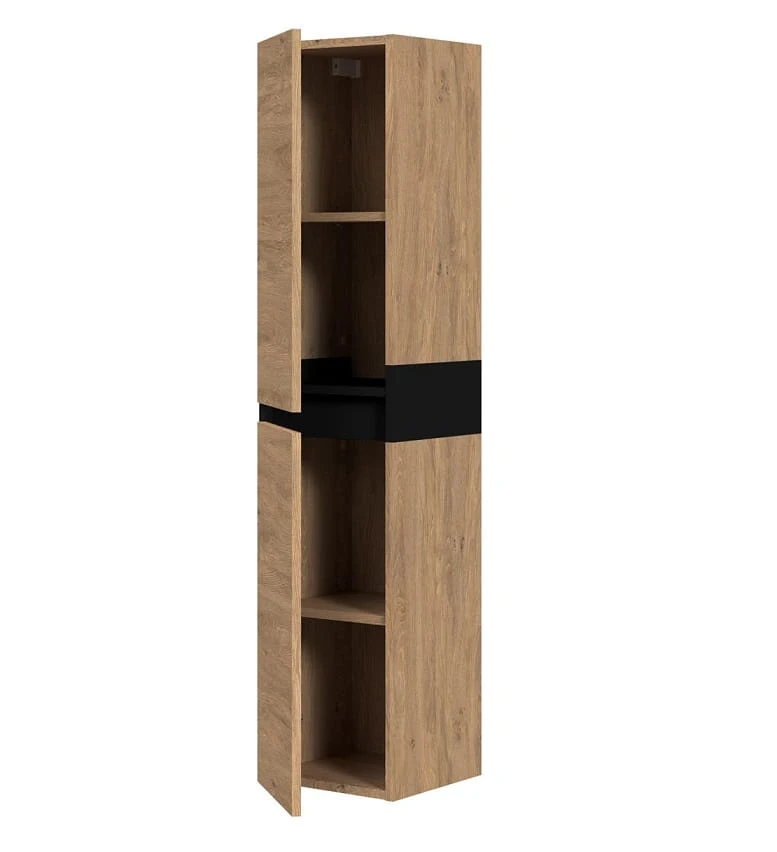 Wykonany w ciepłym odcieniu dębu złotego, z subtelnymi czarnymi akcentami, słupek Desog harmonijnie wkomponuje się zarówno w nowoczesne, jak i klasyczne aranżacje łazienkowe. Ta uniwersalna kolorystyka sprawia, że mebel staje się nie tylko praktycznym elementem wyposażenia, ale także ozdobą, dodającą wnętrzu charakteru i przytulności.