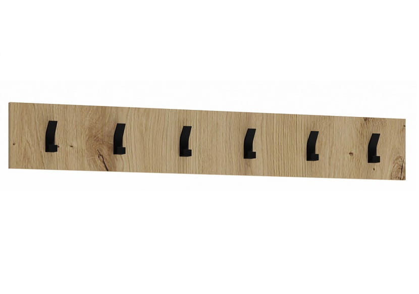 Wieszak na ubrania Clio to nie tylko element dekoracyjny, ale przede wszystkim praktyczny dodatek, który odmieni Twój przedpokój. Dzięki sześciu solidnym haczykom rozmieszczonym na długości 100 cm, zapewnia wystarczająco dużo miejsca na kurtki, płaszcze, szaliki czy torebki całej rodziny. Wykonany z wysokiej jakości materiałów w kolorze naturalnego drewna, idealnie wpisuje się w aktualne trendy wystroju wnętrz, dodając przestrzeni ciepła i elegancji. Kompaktowy wymiar 100x15 cm sprawia, że ten wieszak ścienny doskonale sprawdzi się zarówno w przestronnych, jak i niewielkich przedpokojach. Minimalistyczny design z charakterystycznymi czarnymi haczykami tworzy harmonijny element wystroju, który dopełni każde wnętrze. Montaż na ścianie pozwala zaoszczędzić cenną przestrzeń podłogową, co jest szczególnie ważne w mniejszych mieszkaniach.