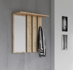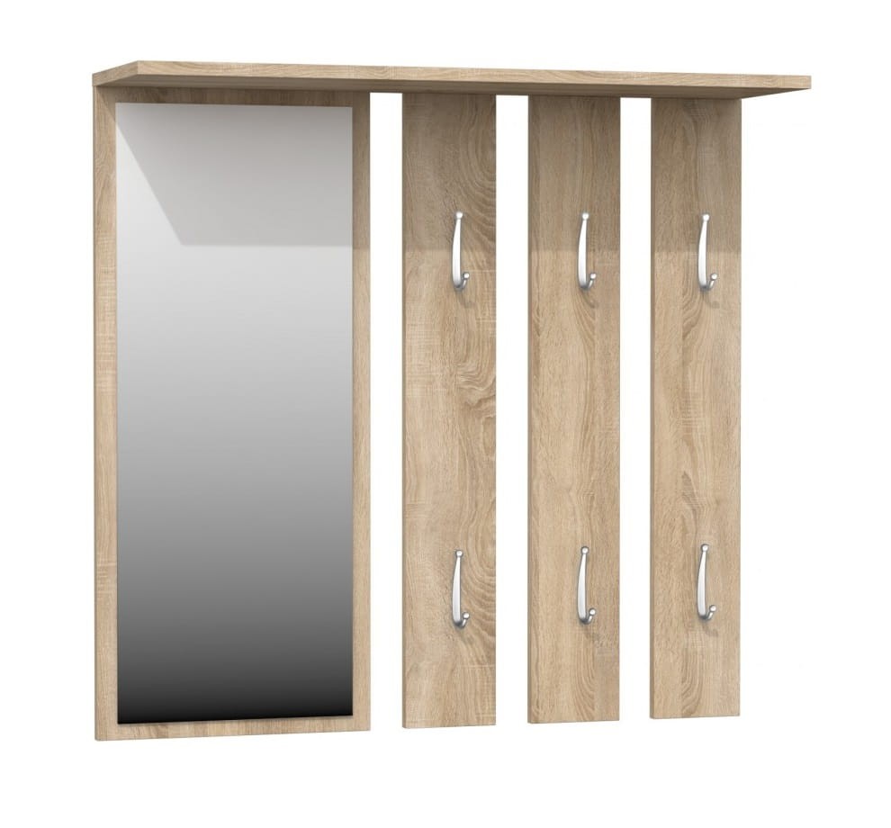 Wieszak z półką i lustrem do korytarza, dąb sonoma