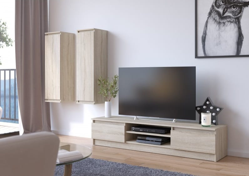 Szafka wisząca do salonu wykonana jest z trwałej płyty laminowanej, odpornej na ścieranie. To solidny mebel, zaprojektowany z myślą o funkcji, a zarazem atrakcyjny z wyglądu. A to dzięki drewnopodobnemu wybarwieniu dąb sonoma. Polecamy Państwa uwadze!