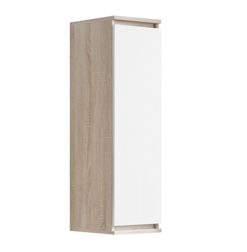 Szafka wisząca do salonu wykonana jest z trwałej płyty laminowanej, odpornej na ścieranie. To solidny mebel, zaprojektowany z myślą o funkcji, a zarazem atrakcyjny z wyglądu. A to dzięki połączeniu kolorów. Tutaj białe fronty świetnie współgrają z bokami w wybarwieniu dębu sonoma. Polecamy Państwa uwadze!