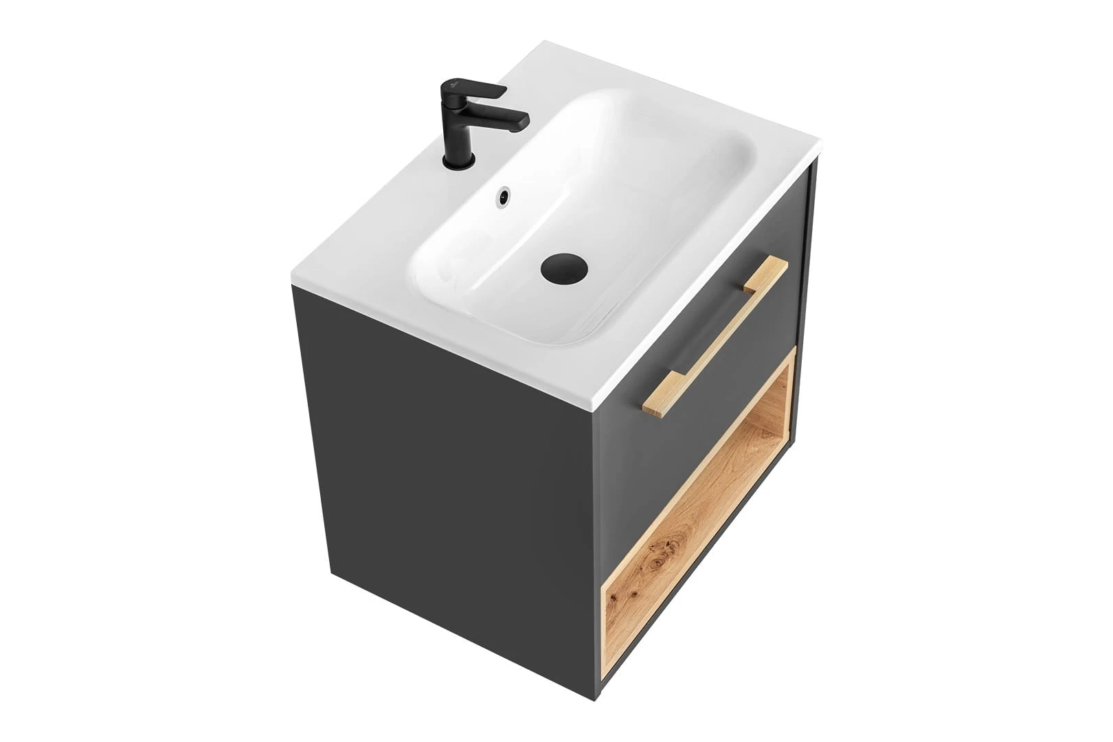 Wiszące meble łazienkowe z umywalką i lustrem 60 cm