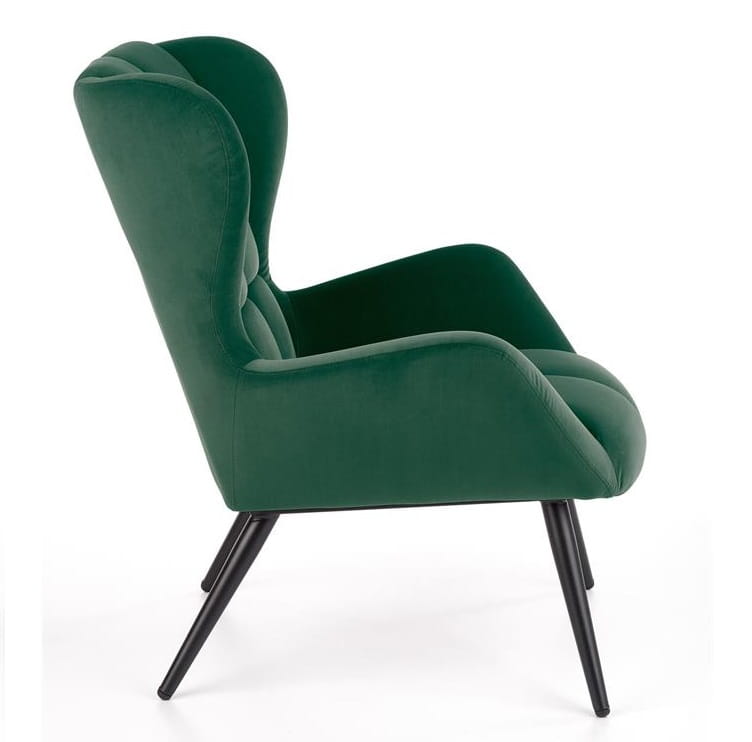 Miękka i przyjemna w dotyku tkanina welurowa to materiał, z którego wykonana jest piękna tapicerka naszego fotela. Jej ładny odcień zieleni prezentuje się naprawdę wyjątkowo. Dekoracyjne pikowania na froncie fotela dodają mu sznytu, przyciągając wzrok każdego, kto spojrzy na ten wyjątkowy mebel do siedzenia.