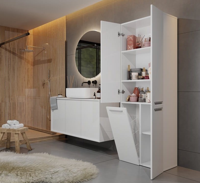 Szafka łazienkowa z koszem na pranie - sprzymierzeniec porządku w łazience