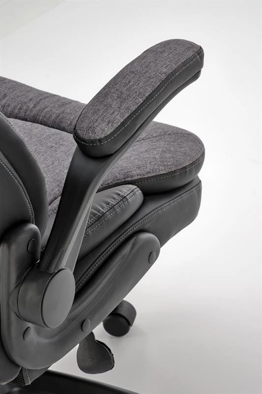 Fotel gabinetowy Lerios to kwintesencja ergonomii i designu, stworzona z myślą o profesjonalistach, którzy cenią sobie zarówno wygodę, jak i estetykę swojego miejsca pracy. Ten wyjątkowy mebel biurowy, tapicerowany dwoma rodzajami tkanin - luksusową czarną ekoskórą oraz elegancką szarą tkaniną materiałową - stanowi prawdziwe dzieło sztuki designu, które z pewnością przyciągnie spojrzenia i podniesie prestiż każdego gabinetu.