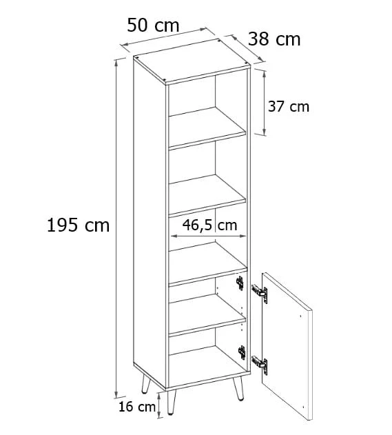 - Wymiary: wysokość - 195 cm, szerokość - 50 cm, głębokość - 38 cm