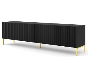 Zapraszamy Państwa do odkrycia wyjątkowej kolekcji Golden Waler - ekskluzywnej serii mebli do salonu, która łączy w sobie doskonałą jakość, estetyczny design i funkcjonalność. Golden Waler to więcej niż meble - to wyraz indywidualnego stylu i elegancji, której nie sposób się oprzeć. Już dziś, zachęcamy do wprowadzenia do swojego domowego wnętrza niezwykłej aury, którą można stworzyć przy pomocy naszych mebli. Jednym z elementów naszego pięknego zestawu jest elegancka szafka RTV, której wizytówkę stanowią frezowane fronty i czarne, matowe wybarwienie, zaakcentowane złotem.