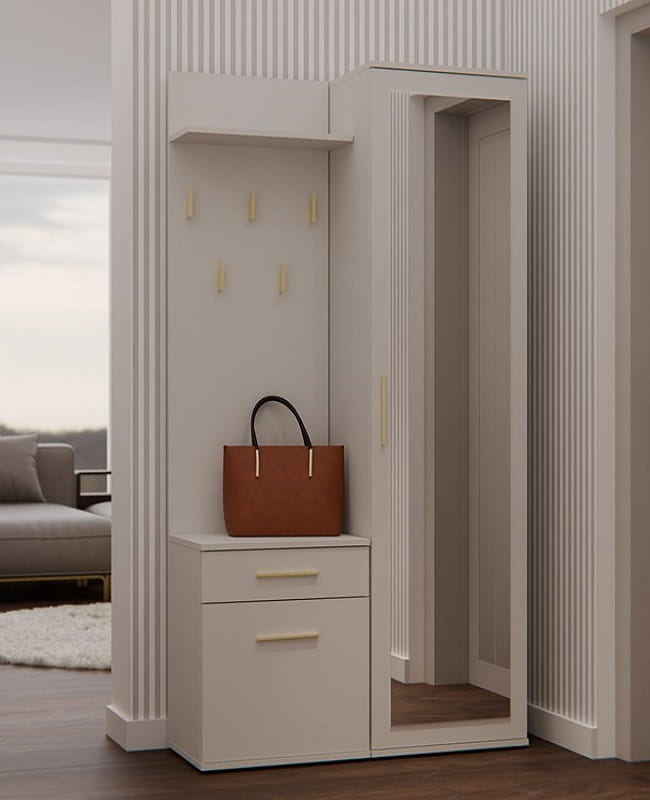 • Oszczędność miejsca: kompaktowa konstrukcja idealnie sprawdzi się nawet w niewielkich przedpokojach.