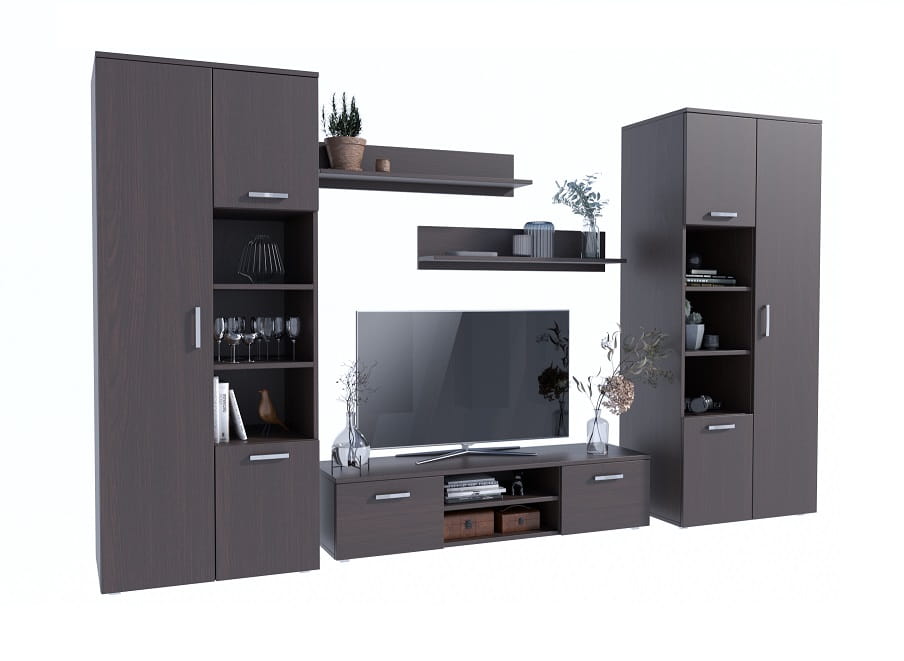 Zestaw mebli do salonu z szafką RTV i szafami wenge