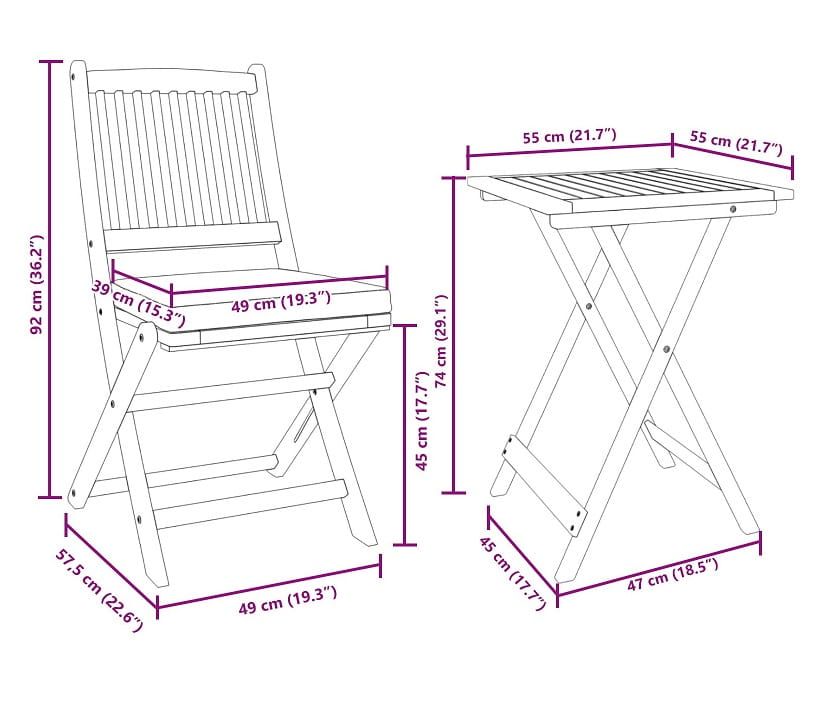- Wymiary: stolik - 55x55x74 cm, krzesło - 49x57,5x92 cm