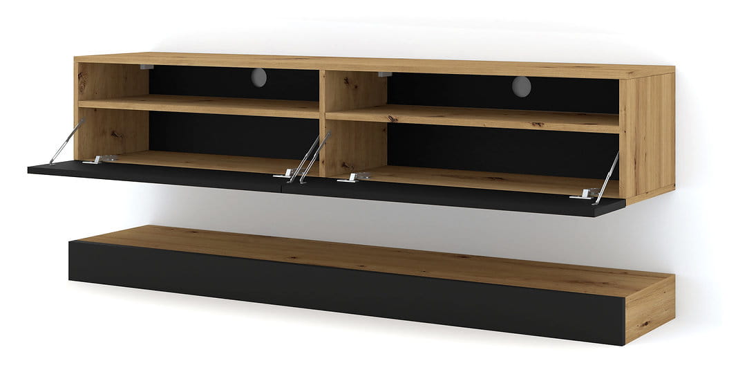 Wiszące szafki RTV z półkami dąb artisan/czarny 160 cm