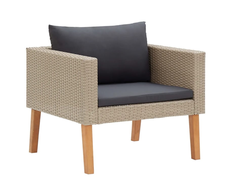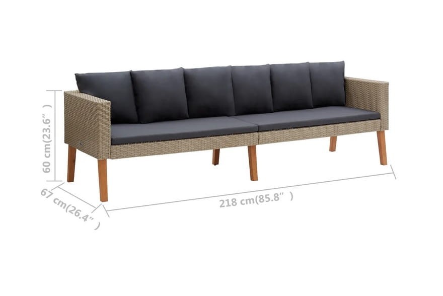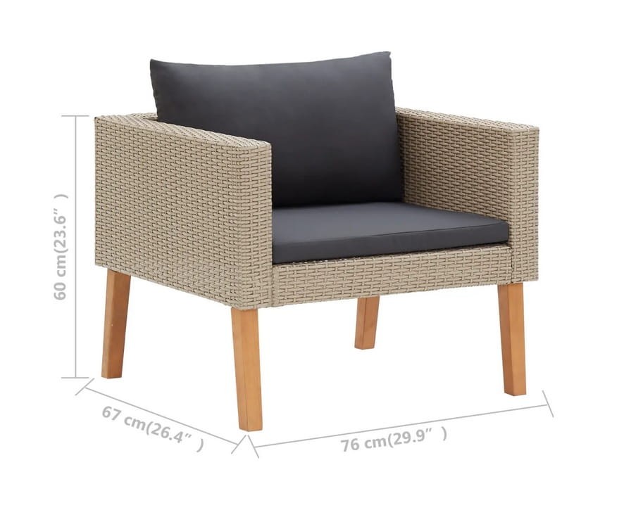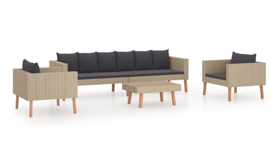 Ogrodowy zestaw wypoczynkowy Poly w kolorze beżowym pozwoli cieszyć się urodą każdego dnia spędzonego na świeżym powietrzu. Jest stabilny, komfortowy, pełen klasy. Składa się z czterech części. W komplecie tym znajduje się 3-osobowa sofa, 2 fotele, a także funkcjonalny stolik kawowy. Całość dopełniają grube poduszki na siedziska i oparcia w stylowym, ciemnoszarym odcieniu. Miękkie elementy zabezpieczone są pokrowcami, które w łatwy sposób można zdjąć i wyprać. Konstrukcję wystarczy przetrzeć wilgotną ściereczką, by nabrała blasku. Cały polirattanowy zestaw do ogrodu łatwo jest utrzymać w czystości. Ponadto nie poddaje się on działaniu wilgoci oraz słońca i nie płowieje. Dzięki temu posłuży przez wiele fantastycznych sezonów.