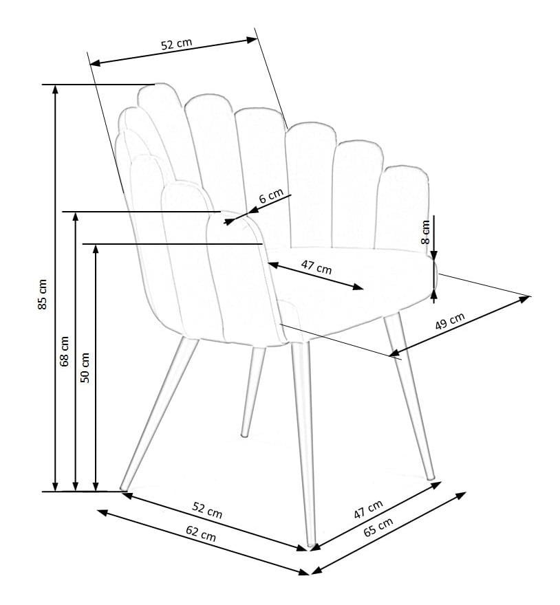 Krzesło Gabby jest również niezwykle wygodne! Na uwagę zasługują: niestandardowa konstrukcja oparcia i scalone z nim podłokietniki z pionowymi przeszyciami nadającymi krzesłu niebanalny wygląd. Tutaj krawędzie muszli tworzą artystyczną elegancję! Do tego obficie wyściełane, miękkie siedzisko zapewniające komfort, przy którym należy nadmienić, iż wykonane jest z najwyższej jakości tkaniny!
