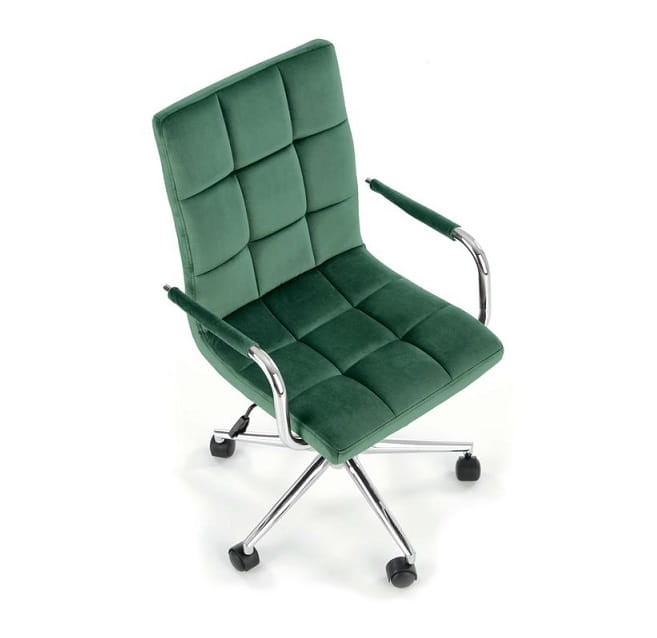 Fotel posiada wygodne podłokietniki, które zapewniają dodatkowe wsparcie dla ramion podczas długich godzin pracy czy nauki. Tapicerka z miękkiej tkaniny velvet dodaje mu eleganckiego wyglądu i przyjemnego w dotyku uczucia luksusu. Jego ergonomiczny design gwarantuje odpowiednie podparcie dla pleców i kręgosłupa, co przekłada się na wygodę użytkowania nawet przez długie godziny. Podstawa wykonana ze stali chromowanej zapewnia stabilność i trwałość, a kółka ułatwiają przemieszczanie się po pomieszczeniu.